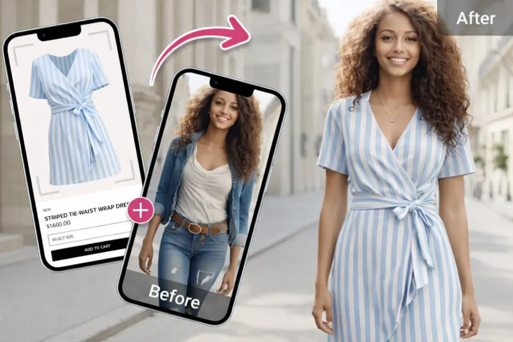 Preview individual garments or entire outfits in seconds. Shoppers can explore full styling combinations before purchase — resulting in: Longer session time Higher add-to-cart rates Fewer post-purchase returns